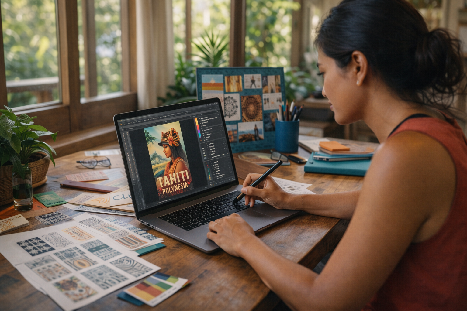 2. Spécialise-toi dans l’authenticité culturelle locale. Positionne-toi comme expert de l’identité visuelle polynésienne. Documente les motifs traditionnels, les symboles culturels, les codes visuels locaux. Crée une banque de références que l’IA ne possède pas. Cette expertise sera ta valeur différenciante.