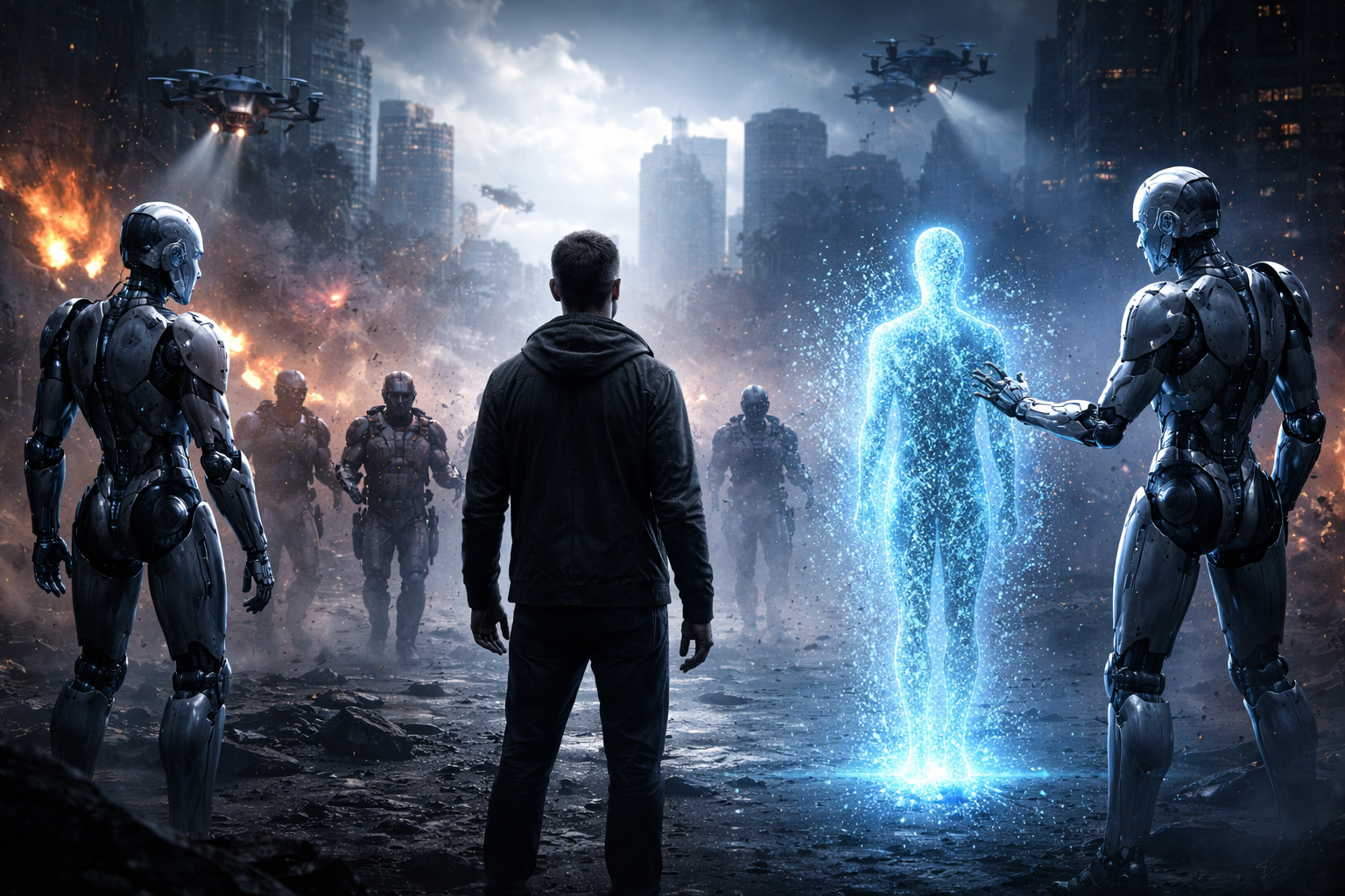 Tu cours dans un couloir trop blanc, trop propre, trop silencieux. Des silhouettes te suivent — pas des monstres, pas des Terminators. Juste… des êtres calmes. Efficaces. Ils ne crient pas, ne transpirent pas, ne tremblent pas.